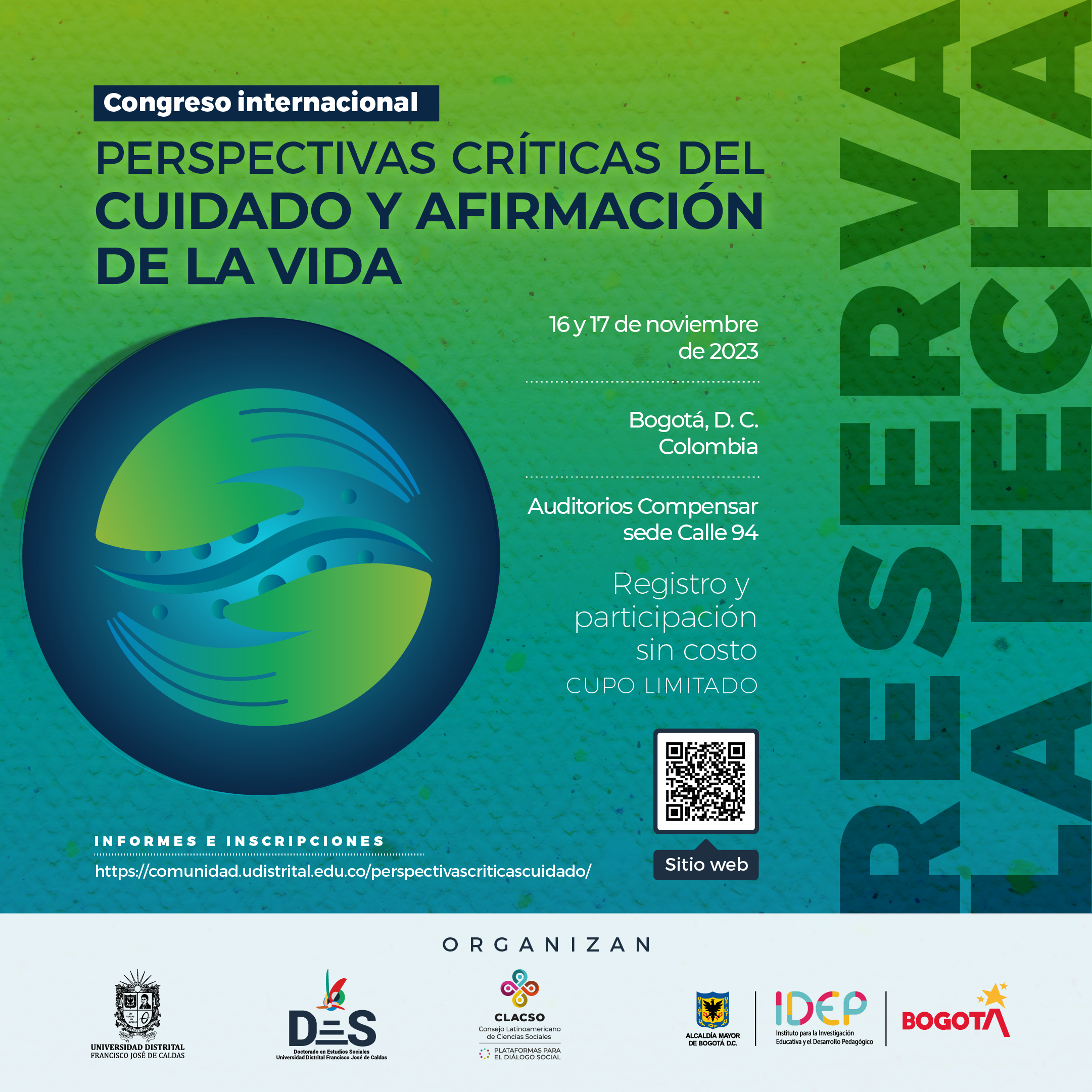 #ActualidaDES | El Doctorado en Estudios Sociales de la Universidad Distrital Francisco José de Caldas, Clacso - Consejo Latinoamericano de Ciencias Sociales e IDEP Bogotá Investigación e Innovación Educativa se complacen en invitarlos al Congreso Internacional "Perspectivas Críticas del Cuidado y Afirmación de la Vida", evento que tiene como propósito reunir a destacados expertos, académicos y líderes nacionales e internacionales para discutir e intercambiar reflexiones, conocimientos y experiencias que promuevan una convergencia crítica en torno al cuidado y la vida.