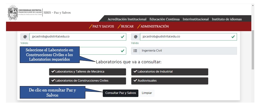 Instructivo consulta y expedición Paz y Salvo Laboratorio de Construcciones Civiles:
