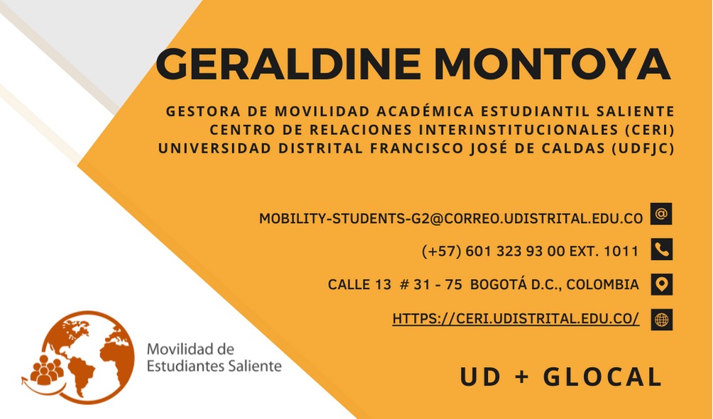 Para las convocatorias es necesario presentar los documentos ante la oficina del CERI, en esta oficina la persona encargada de los procesos de los docentes es Mauricio Morales con número telefónico 3239300 ext. 1012, y la persona encargada de los estudiantes es Alix Sierra con número telefónico 3239300 ext. 1014.